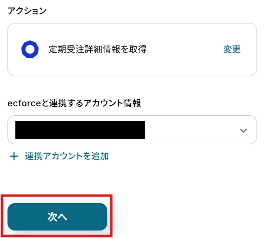 次に、ecforceで作成した定期受注の詳細情報を取得する設定を行います。