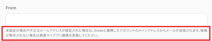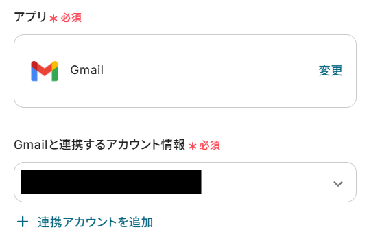 ecforceと同様に、ステップ1でマイアプリ連携したGmailのアカウント情報が自動で表示されます。