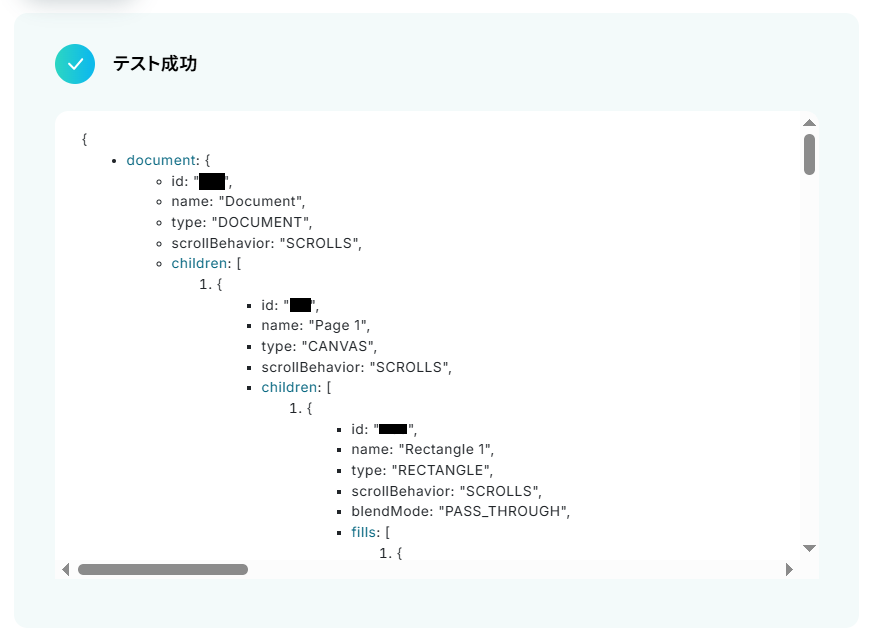 テストに成功するとテスト成功画面と取得した値が表示されますのでご確認ください。