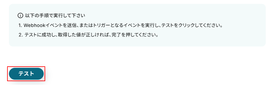 設定できたらテストをクリックしましょう。