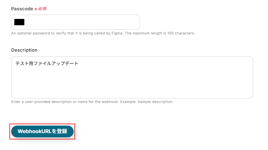 Webhookを設定する際の説明となる任意の文言を設定してください。
