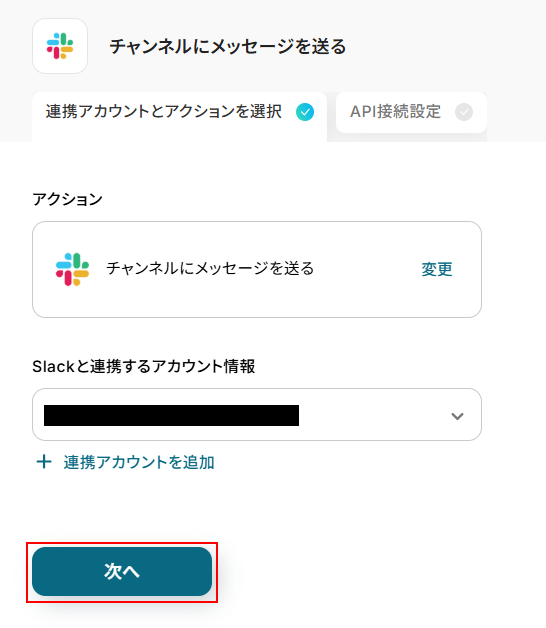 ステップ5:Slackのチャンネルにメッセージを送る設定