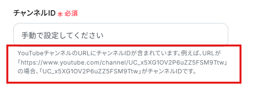 4.「チャンネルID」は、入力欄下の説明に従って、入力してください。