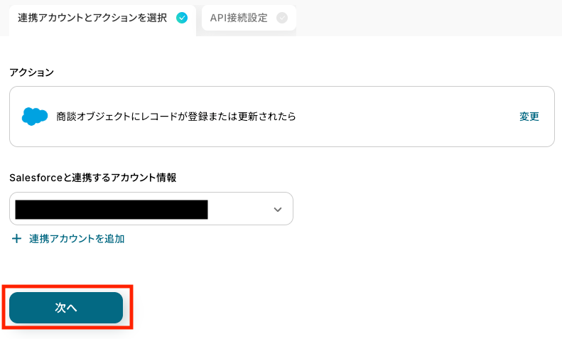 まずは、連携するアカウントとアクションを設定します。