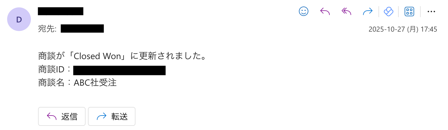「受注が決まるたびに、経理や法務担当者へ定型メールを手作業で送るのが地味に面倒…」