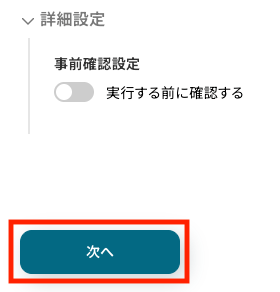メール内容の設定が完了したら、必要に応じて詳細設定を行い、次へ進みましょう。