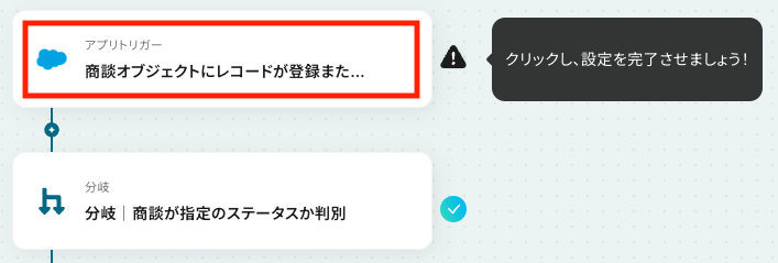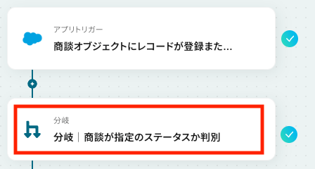 それでは、フロー内の「分岐│商談が指定のステータスか判別」をクリックし、分岐条件の設定を始めましょう。