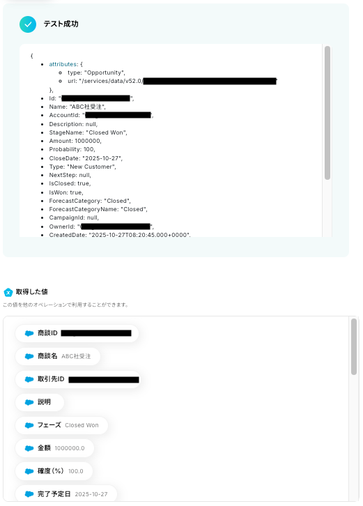 Salesforceの商談情報が正しく反映されていれば、設定は成功です!