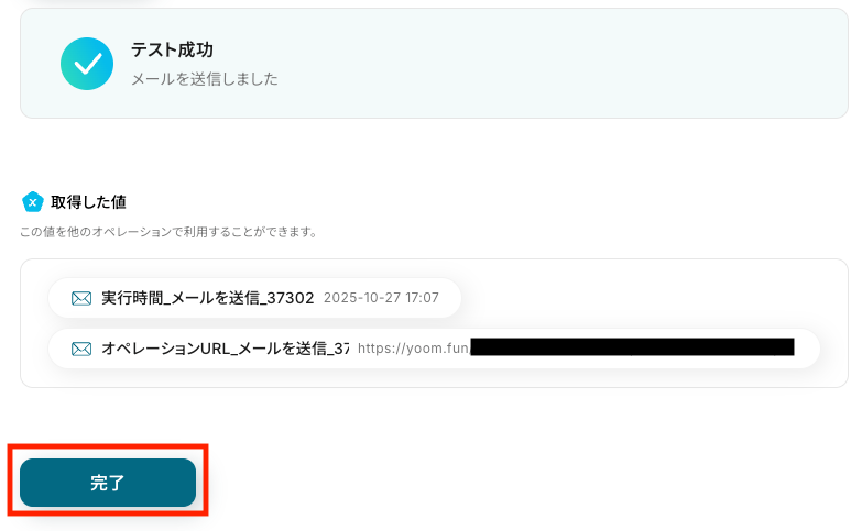 「完了」をクリックして設定を終了します。