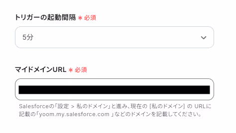 「トリガーの起動間隔」を確認し、「マイドメインURL」は手動で入力します。