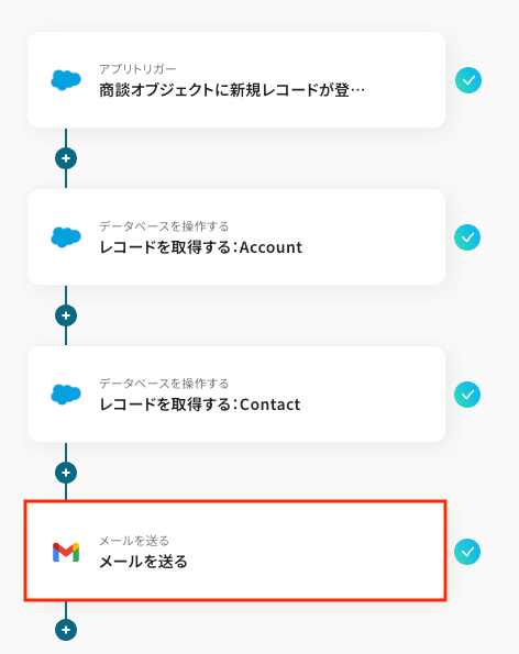 このワークフローを活用すれば、Salesforceの商談登録をトリガーとしてGmailで関連部署へ自動でメール通知を送信できるため、こうした課題をスムーズに解消し、迅速な情報共有を実現します。