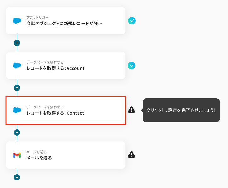 Salesforceの商談情報をGmailに送るにあたって、通知に必要なレコードの取得設定をします。
