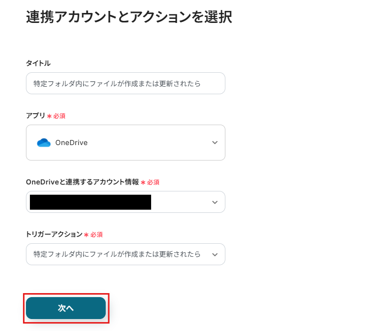 ここで指定したOneDriveのフォルダにファイルがアップロードされたら、フローが起動します。