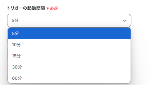 トリガーの起動タイミングは、5分、10分、15分、30分、60分のいずれかで設定できます。