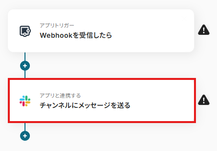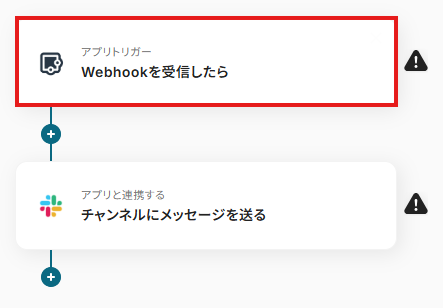 1.先ほどの画面で「OK」をクリックして、表示された画面のアプリトリガー「Webhookを受信したら」をクリックしてください。