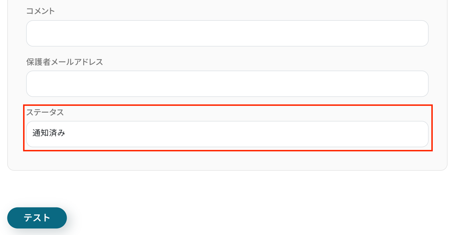 ここでは「ステータス」を更新したいので、下図のように入力しました。