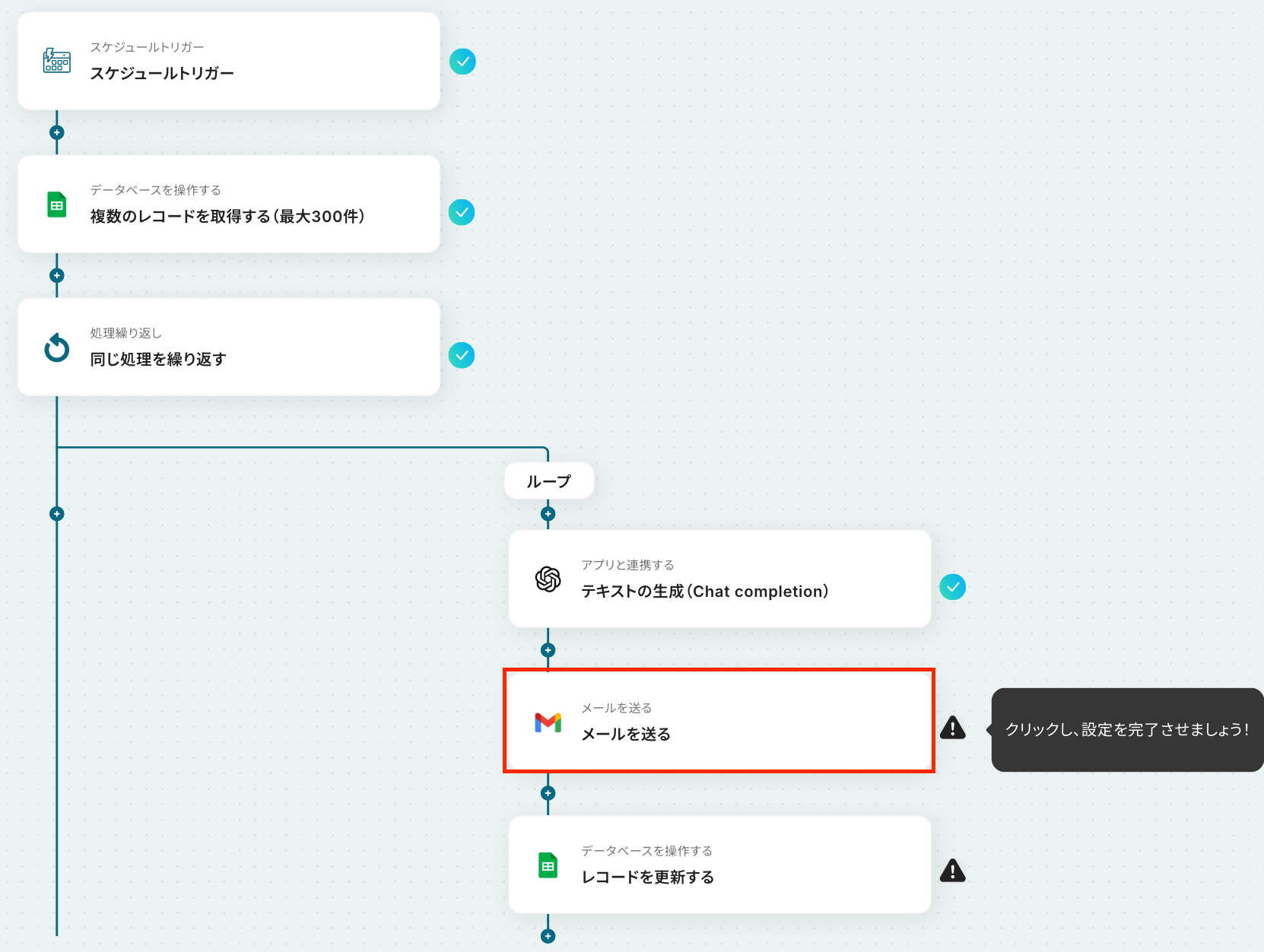 ここでは、OpenAIで生成したレポートをGmailで通知する設定を行います。