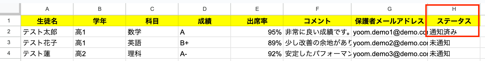Google スプレッドシートの画面に移り、更新されたか確認をしてみましょう。