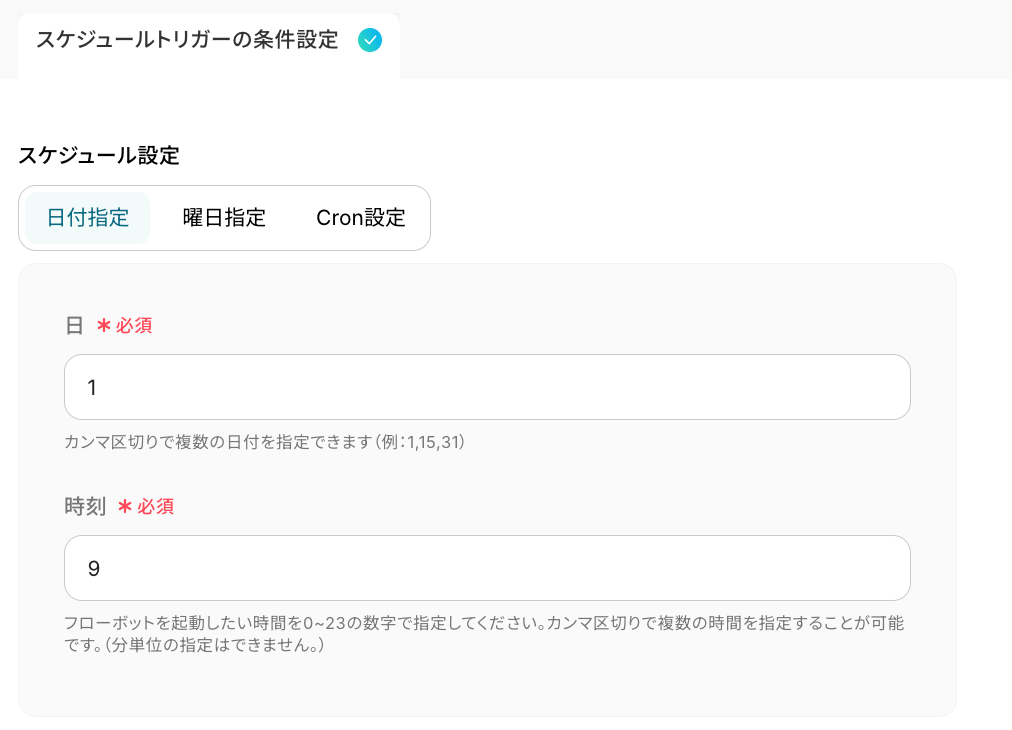 詳細については、スケジュールトリガーの設定方法を参考にしてください。