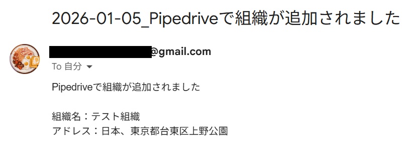 Pipedriveで組織が追加されたら、Gmailで通知する