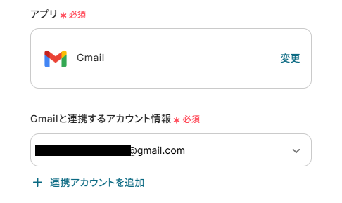 アカウント情報は、連携したいGmailアカウントが選択されているか確認してください。