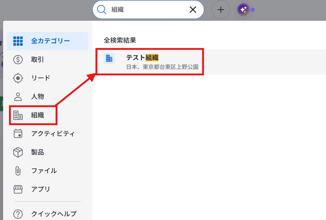 今回のWebhookイベントが「組織の追加」なので、Pipedriveのページに移動し、組織を追加します。