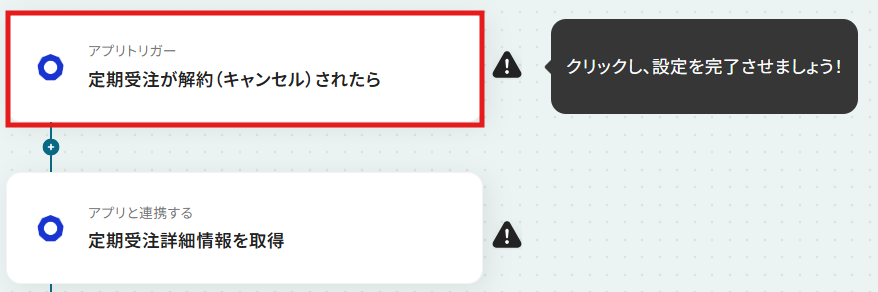トリガーは、「定期受注が解約(キャンセル)されたら」のままで次に進みましょう!