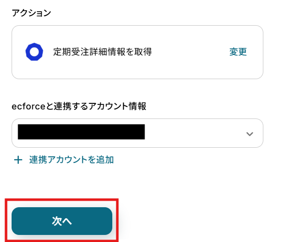 次に、ecforceでキャンセル処理した定期受注の詳細情報を取得する設定を行います。
