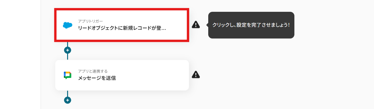 まず、一番上の「リードオブジェクトに新規レコードが登録されたら」のアイコンをクリックします。