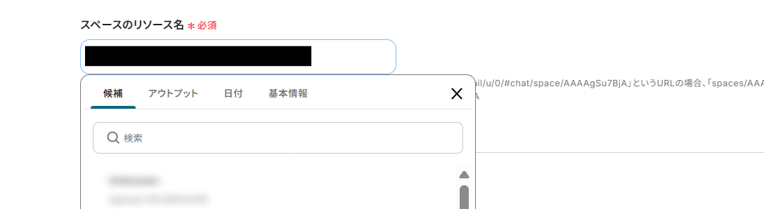 スペースのリソース名:入力欄をクリックすると、以下のように候補が表示されます。