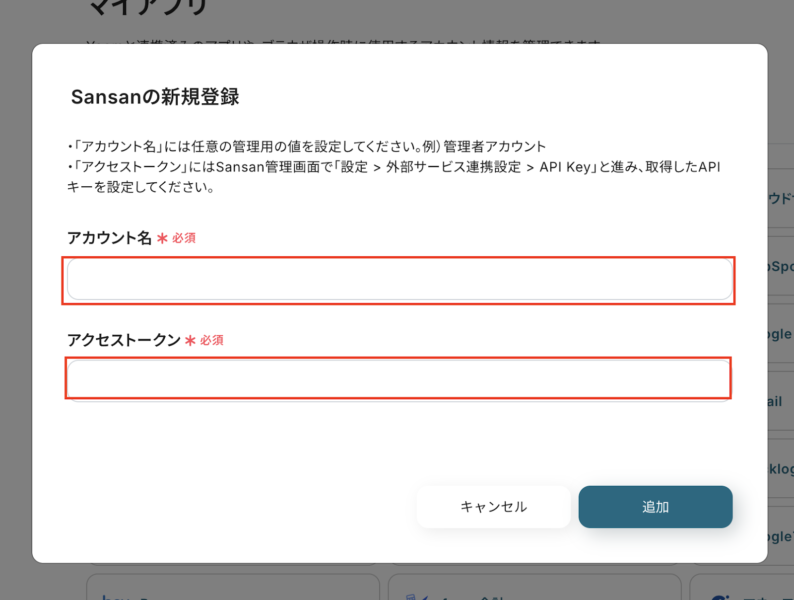 アクセストークンは、Sansanの管理画面で取得したAPIキーを設定しましょう。