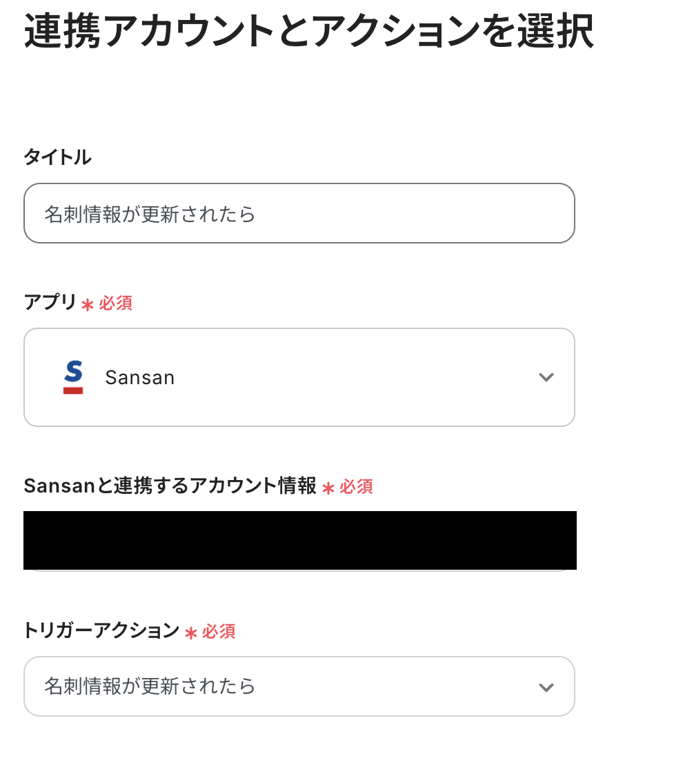 設定したら、Sansanのトリガーアクション(名刺情報を更新)を実行したら、テストをクリックしてください。
