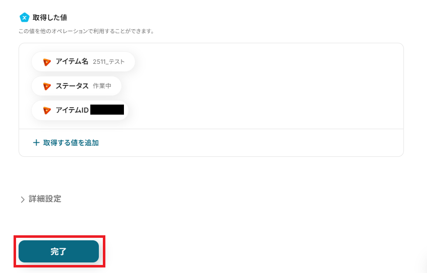 取得した値を活用することで、固定値ではなく、トリガーが実行されるたびに最新の値が反映されます。