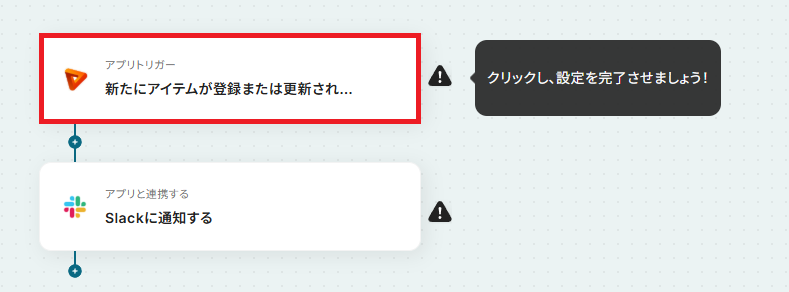 ここで、トリガーとなるアクション(新たにアイテムを登録または更新する)を行いましょう。