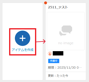 新たに作成する際は、架空の情報(「テストアイテム」など)でOKです。