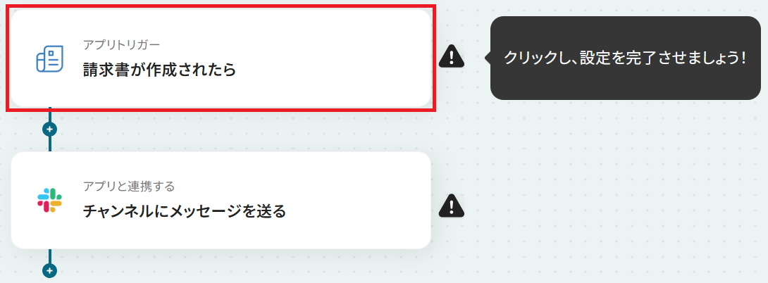 作成したらYoomの設定画面に戻り「請求書が作成されたら」をクリックしてください。