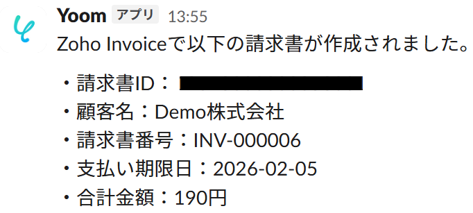 Zoho Invoiceの請求書情報がSlackに通知されました!