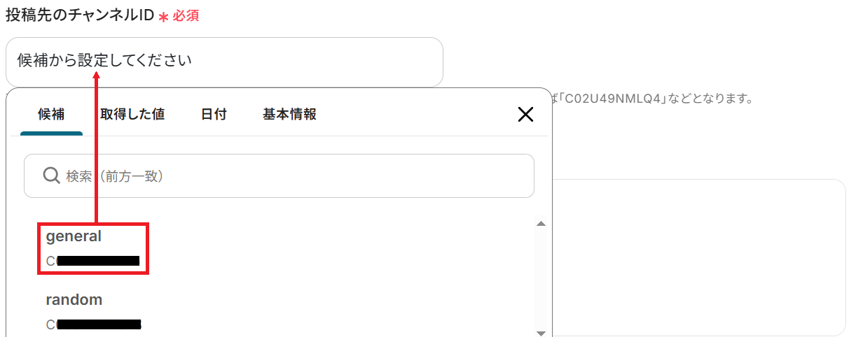 次に、投稿先のチャンネルIDを候補から選択しましょう。