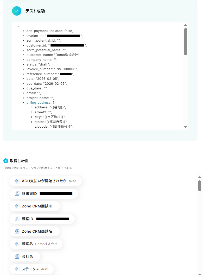 以下のように取得した値を設定することで、トリガーが実行されるたびに最新の請求書情報が反映されます。設定が完了したらテストしましょう。