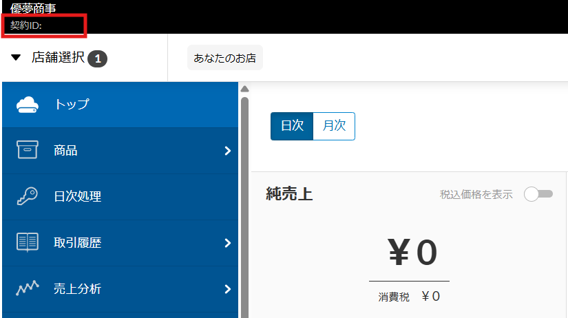 契約ID スマレジにログインし、画面左上で確認できます。 詳細な手順については、下記をご参照ください。