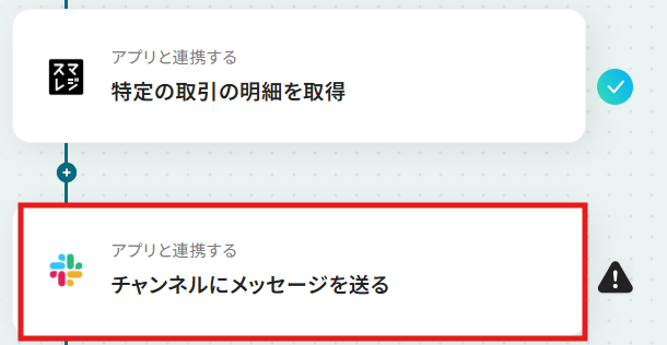 最後に、スマレジで登録した取り置き取引の情報をSlackで通知する設定を行います。 「チャンネルにメッセージを送る」をクリックしてください。