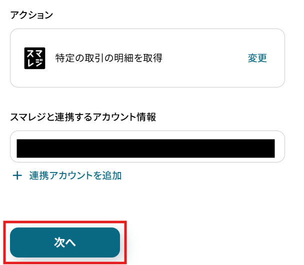 こちらもステップ1でマイアプリ連携した際の情報が記載されています。 トリガーアクションは、「特定の取引の明細を取得」のままで次に進みましょう!
