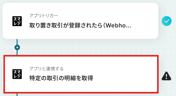 次に、スマレジに登録した取り置き取引の詳細情報を取得する設定を行います。 「特定の取引の明細を取得」をクリックしてください。