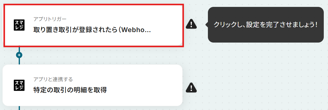 「取り置き取引が登録されたら(Webhook起動)」をクリックします。