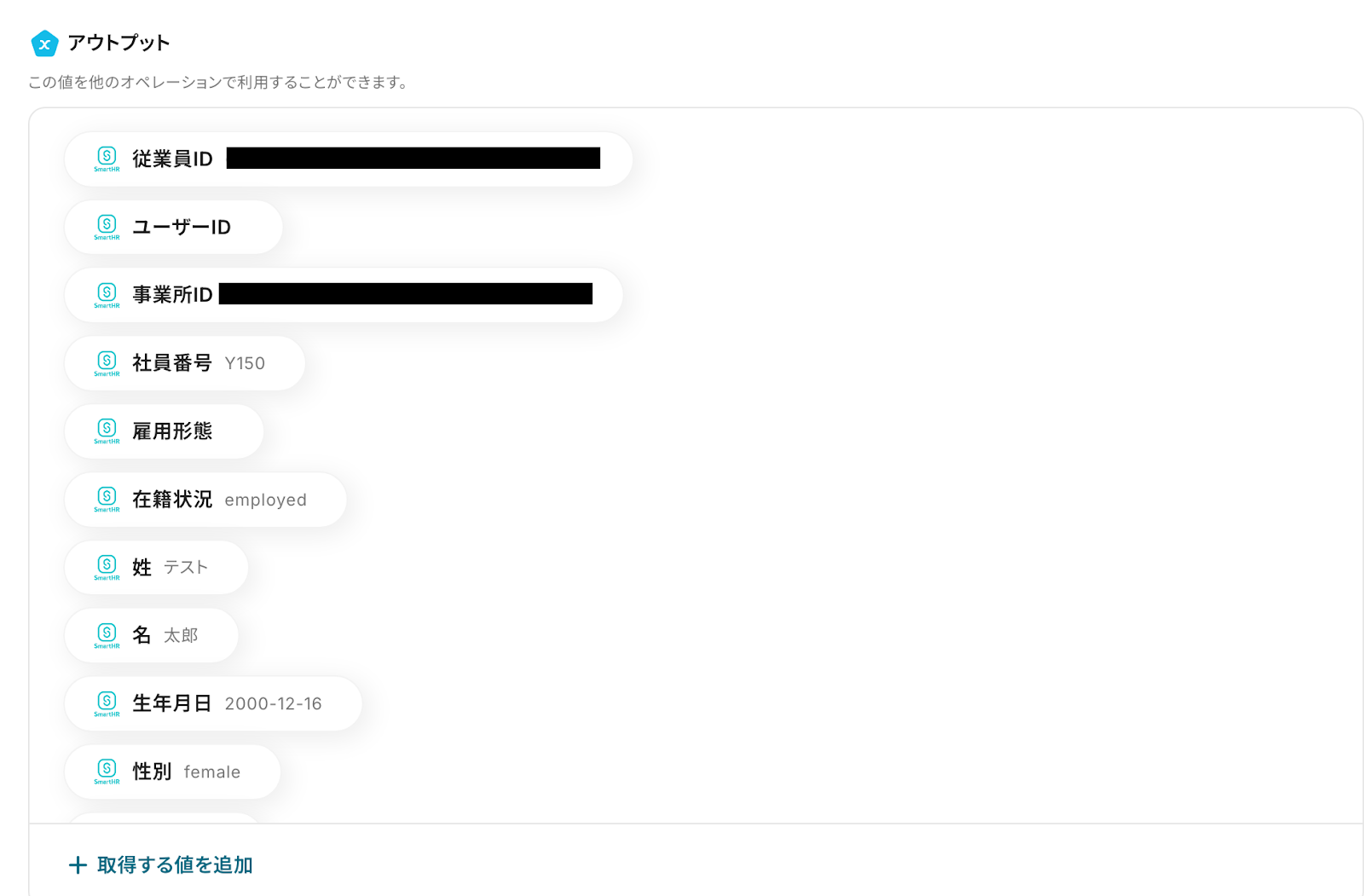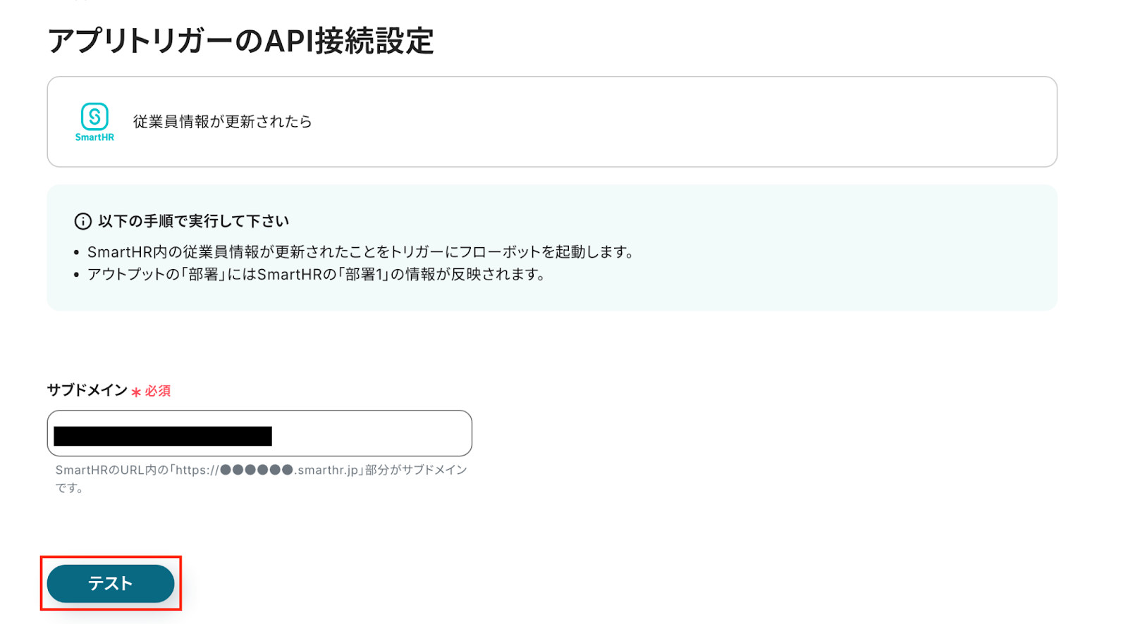 ※SmartHR上で更新が反映されていないとテストは成功しません。ご注意ください。