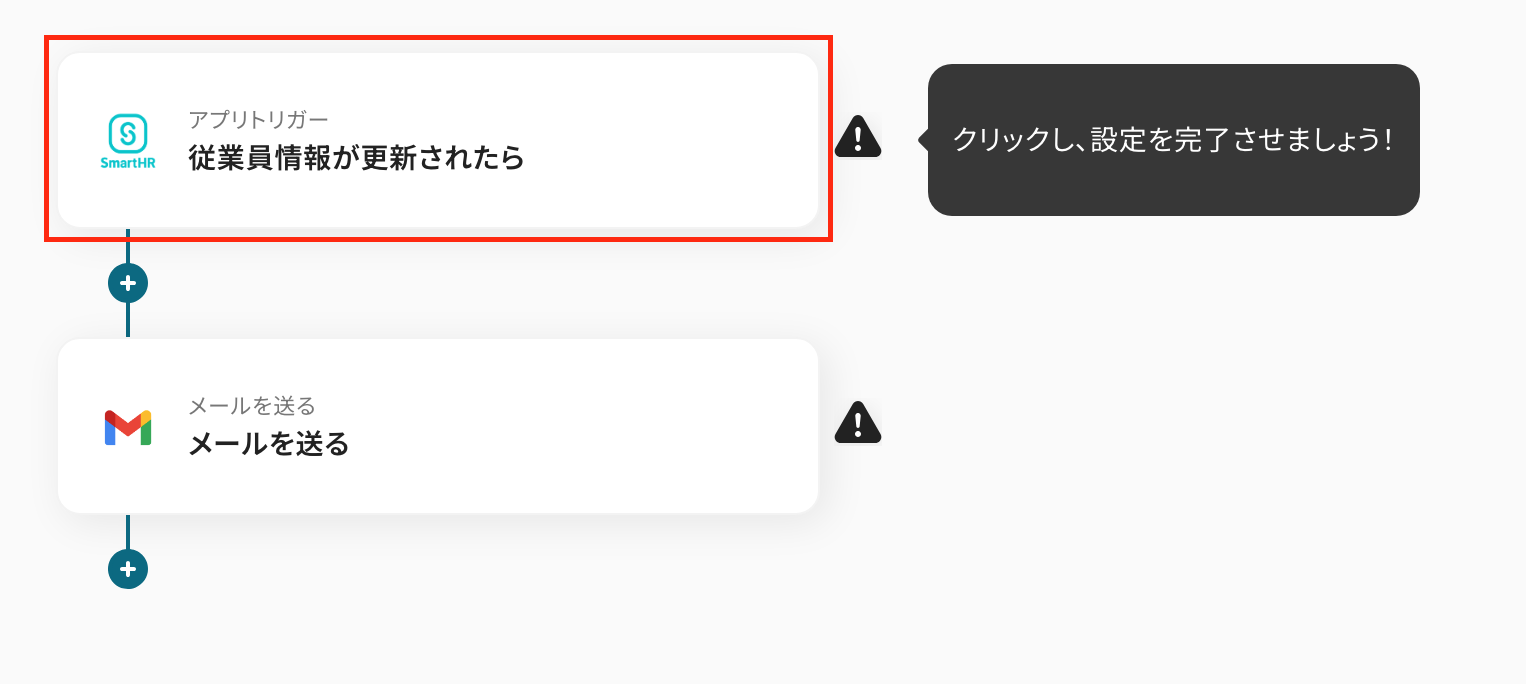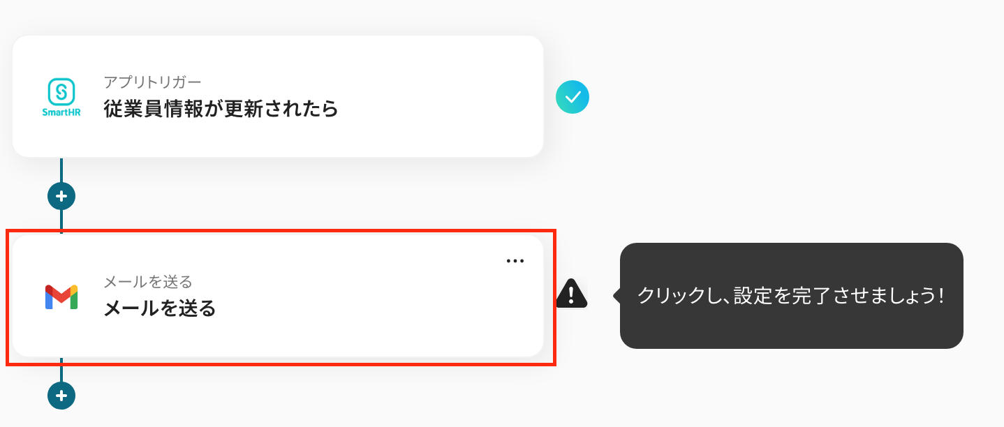 最後の設定です!ここでは、SmartHRで従業員の情報が更新されたら、Gmailに通知する設定をします。