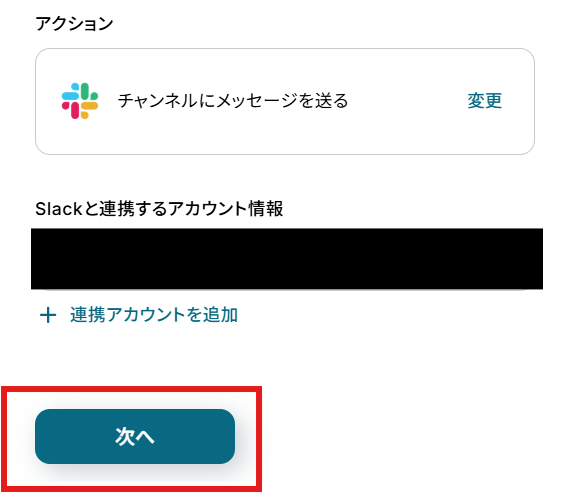 「連携するアカウント情報」を確認し、「次へ」をクリックして進んでください。