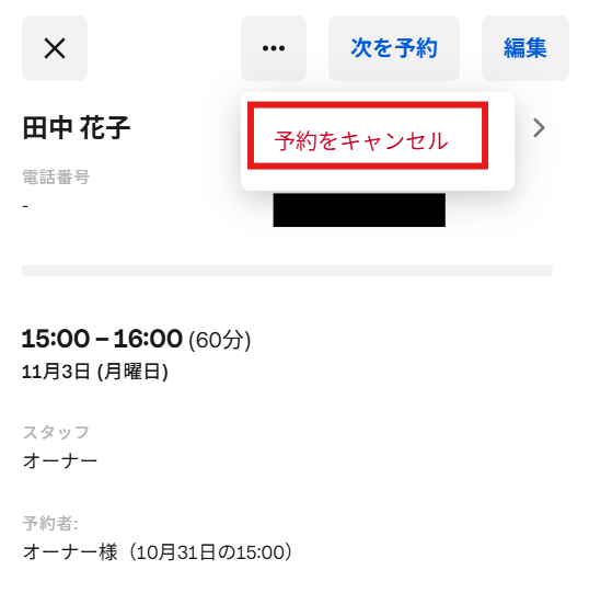 設定できたら、Squareでテスト用の予約を作成し、キャンセルしましょう。