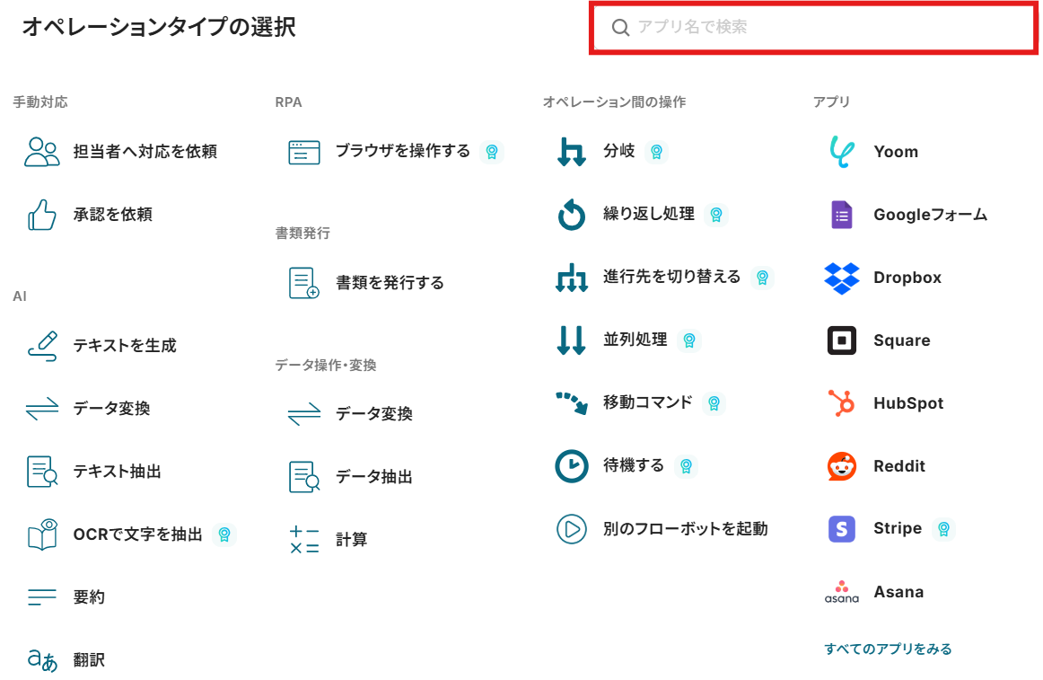 ・分岐はミニプラン以上のプランでご利用いただける機能(オペレーション)となっております。フリープランの場合は設定しているフローボットのオペレーションはエラーとなりますので、ご注意ください。