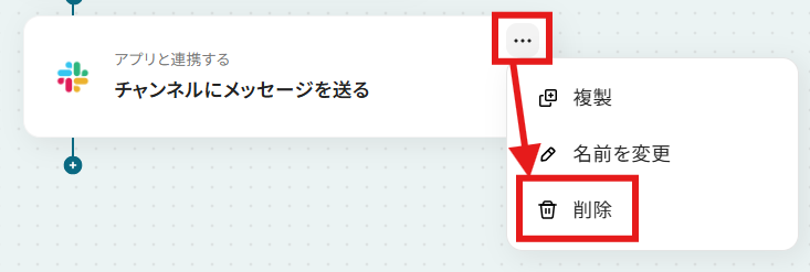 A:はい、可能です!例えば、Gmailに連携させたい場合は、まず、Slackの「チャンネルにメッセージを送る」オペレーションを削除します。